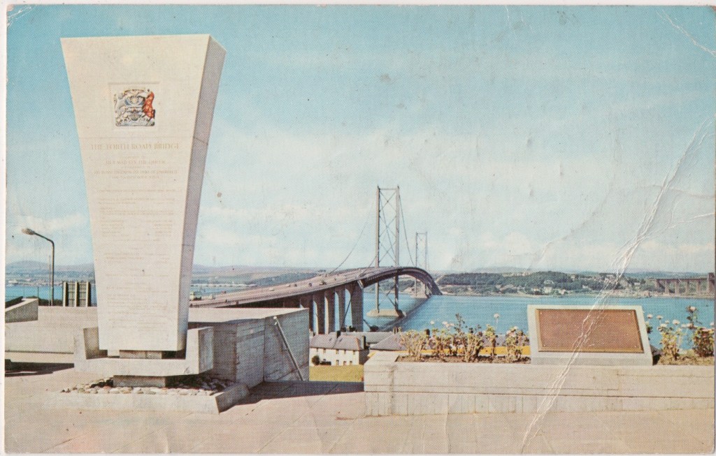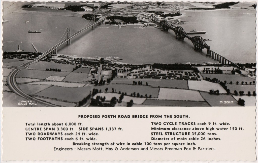 This photograph of the display model of the Forth Road Bridge is fully annotated with useful information. The bridge opened in 1964 and at the time was the longest suspension bridge in the world outside the United States.