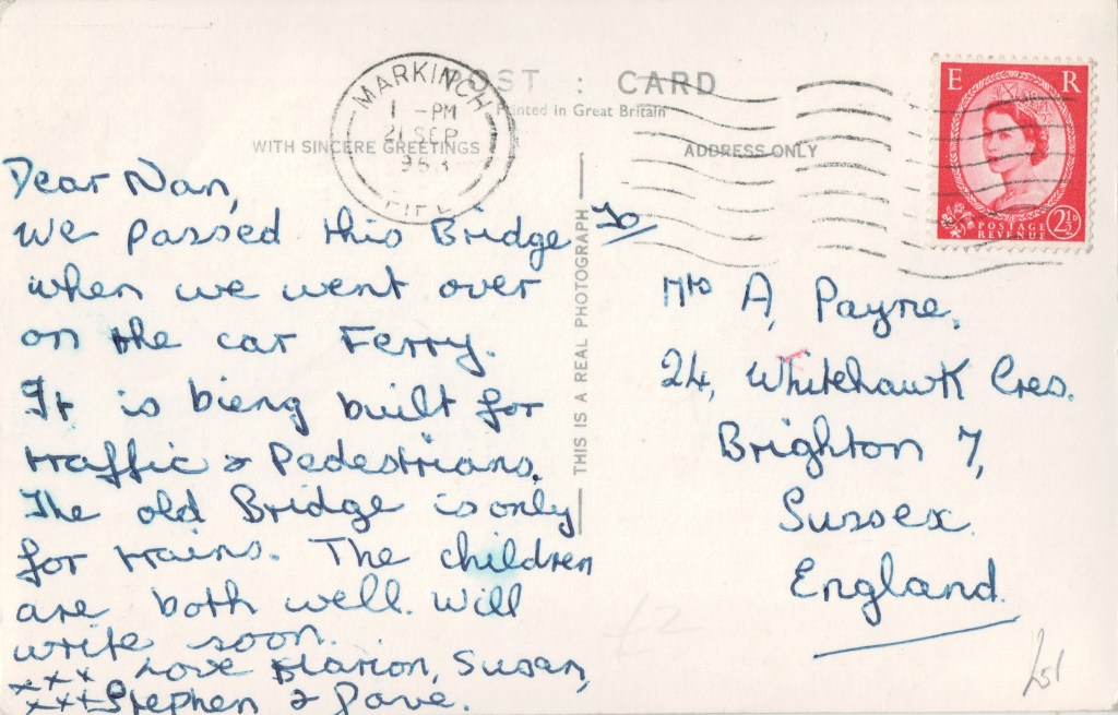Here is the bridge under construction and a contemporaneous account on a card postally used on 21 September 1963:
