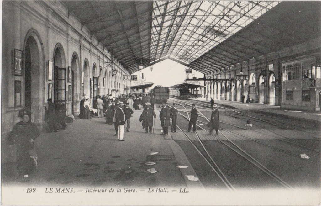 The history of railway communication in Le Mans began in the mid-19th century. The first trains arrived in 1854, when the line connecting Paris and Rennes was opened. The Le Mans station, which marks the end of the third section of the Western Railway [Compagnie des chemins de fer de l’Ouest] is the work of Victor Lenoir, (1805 to 1863) the company’s architect. He also designed the Gare Montparnasse in Paris which suffered damage on 22 October 1895 when the Granville to Paris express slammed through its frontage, giving rise to iconic railway images.