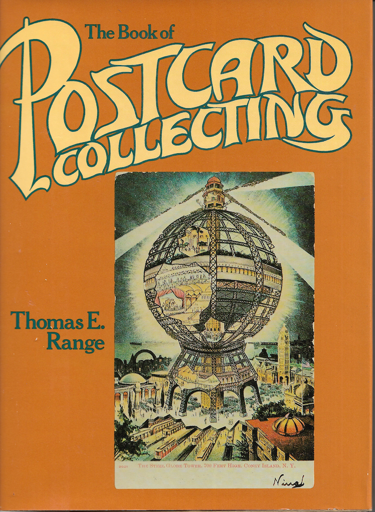 ![]() | The Book of Postcard Collecting, by Thomas E. Range (E.P. Dutton, 1980, ISBN 9780525931577). This is an American book, written by an experienced collector of New York cards. It does offer an interesting and perhaps less familiar perspective from “over the Pond”, which will be helpful to anyone collecting cards from the USA or on US topics. And as the author is also a stamp collector, his focus on the design of card backs, and some postal detail, is also helpful. The large format hardback (just under A4) is well illustrated with 32 colour images and 228 in black and white. It’s probably best to find a copy from a UK-based seller, to avoid extra postage costs. |