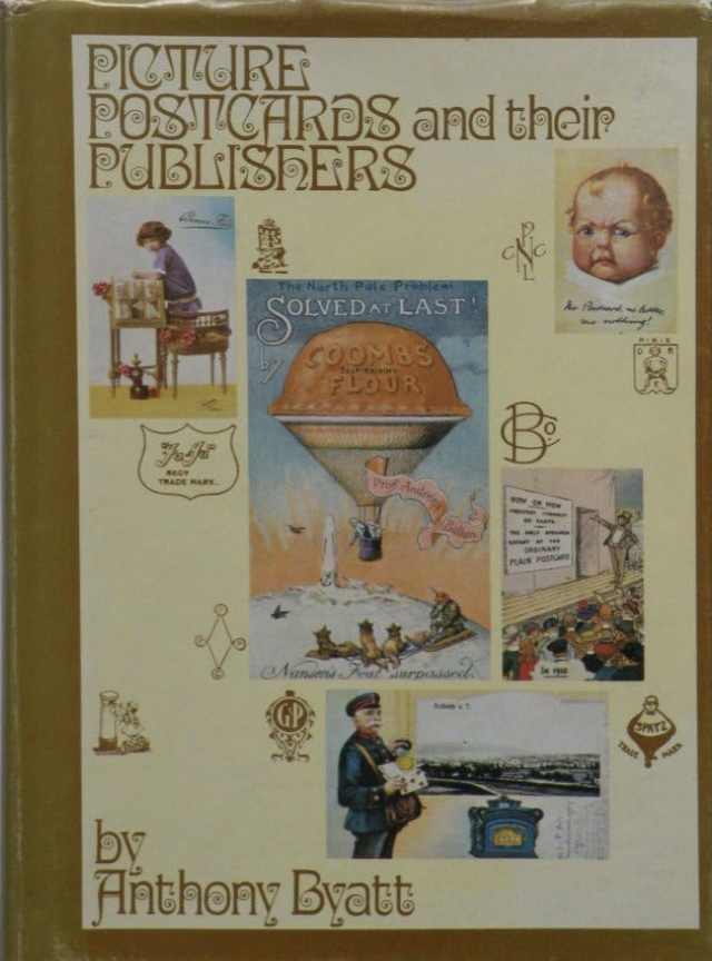 ![]() | Picture Postcards and their Publishers – an illustrated account identifying Britain’s major postcard publishers 1894-1939, and the great variety of cards they issued, by Anthony Byatt (Golden Age Books, 1978, ISBN 9780950621203). This work contains details of many of the main British postcard publishers, with black & white illustrations of a number of cards. There are useful illustrations of publisher’s Trade Marks ; an index of publisher’s initials, series names and trade mark names ; and an index of postcard artists. Although a relatively early publication in this field, it is packed with information that is still very useful. |