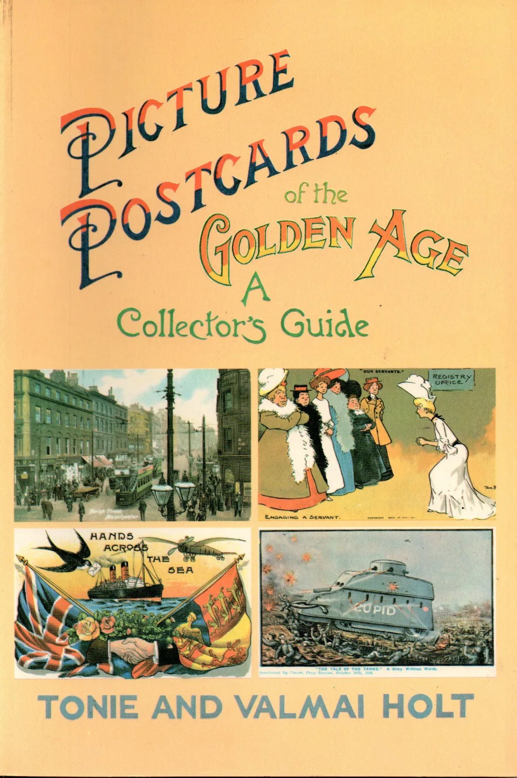 ![]() | Picture Postcards of the Golden Age – a collector’s guide (Postcard Publishing Company, 1978, no ISBN for this paperback edition). This was written by Tonie and Valmai Holt, a well-known team of authors on postcard topics. Although published in 1978, it remains a very useful volume. Chapters include the early history of the picture postcard ; mechanics of collecting ; topographical cards ; topic and commemorative cards ; how to date postcards ; how to value postcards ; postcard publishers ; and much more. Note there was an earlier hardback published in 1978, ISBN 9780261632455). |