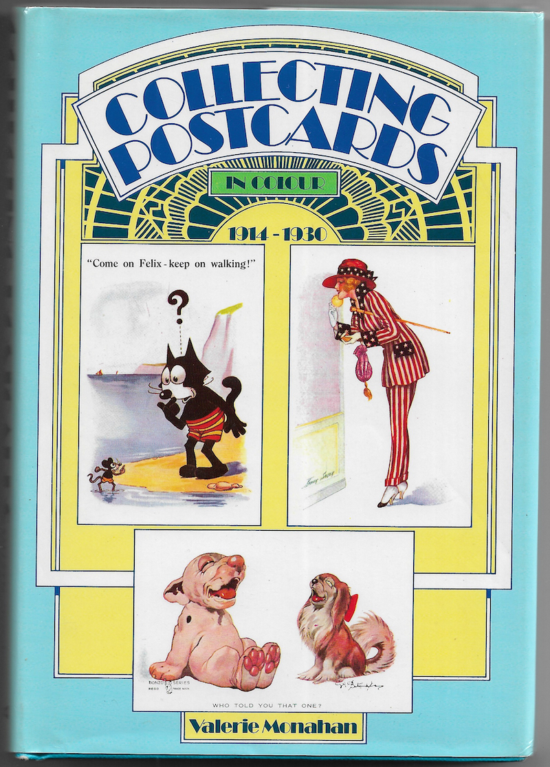 ![]() | Collecting postcards in colour, 1914-1930, by Valerie Monahan, (Blandford Press, 1980, ISBN 9780713710021). This was the second of two volumes focusing on colour postcards, covering the period from the First World War into the 1920s (the first volume, covering the period 1894-1914, is described above). It is organised in a slightly different way to the earlier volume. The colour section remains, with another 192 (mostly) colour images across 66 pages, and as the publisher is still Blandford, the reproduction quality remains excellent. The text is divided into sections on WW1 cards ; cards showing the social history of the 1920s ; a listing of some “best sellers” of the 1920s ; and details of some of the leading artists of the era. The reference guide to rarity and price is more limited, only being applied to those cards shown on the plates. |